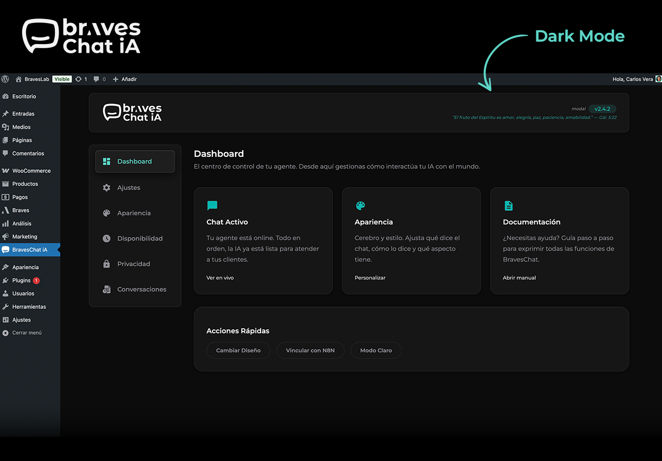 BravesChat is the bridge between your WordPress site and your N8N workflows: connect any AI agent you have built with your visitors, without extra code and in minutes.