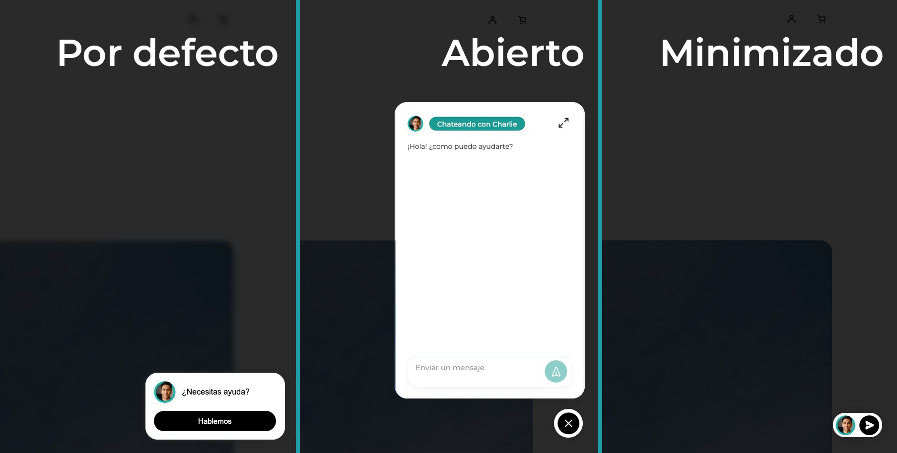 - Full brand customization: Colors, texts, position, skin, and display mode (floating widget or full screen) — all adjustable without touching code.