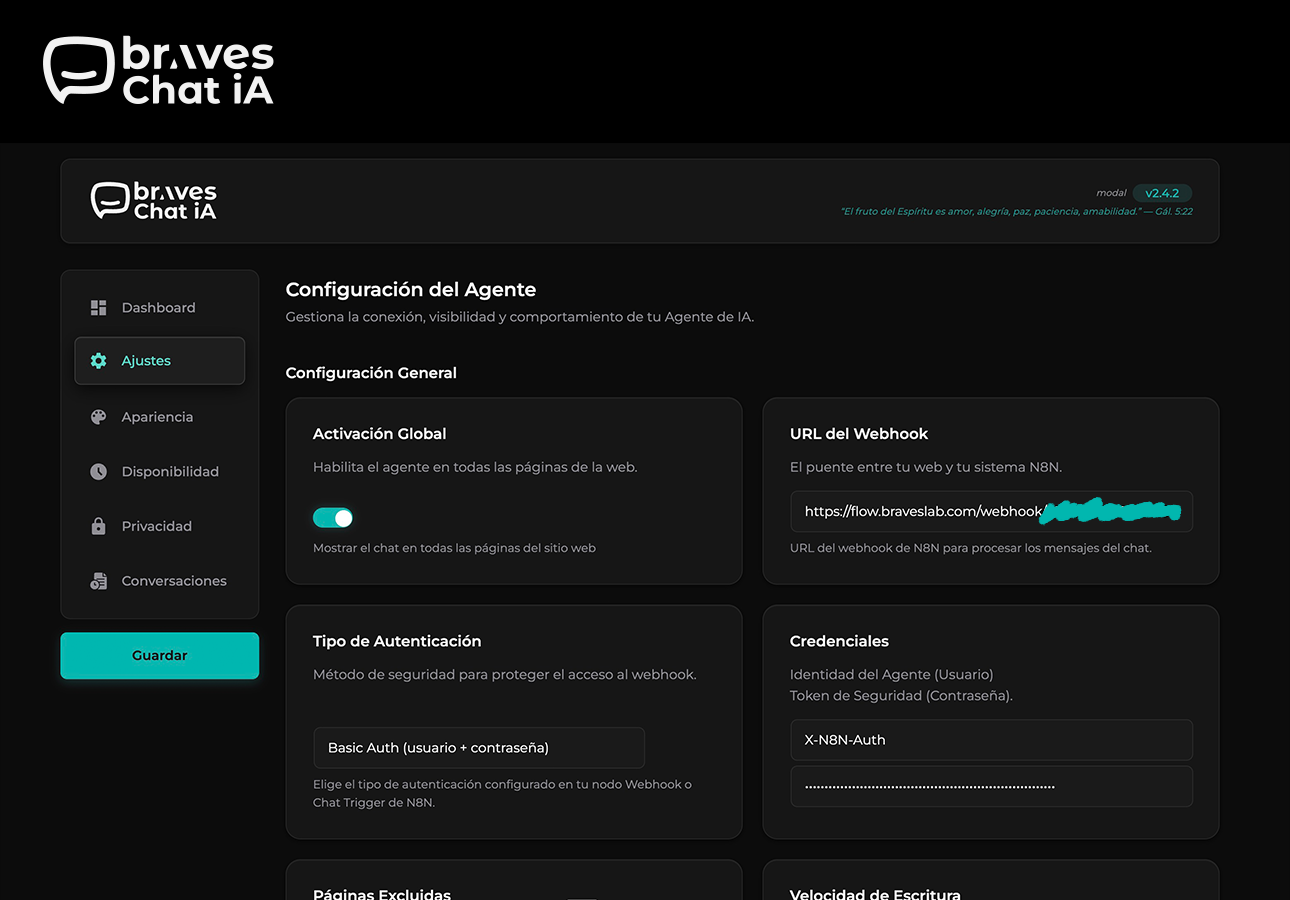 - Go to BravesChat Settings and enter your N8N webhook URL.