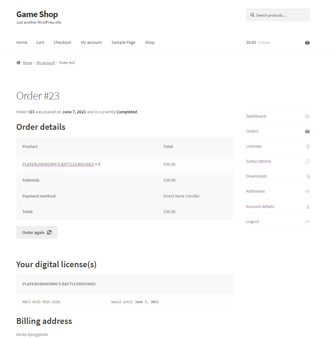 - Show purchased Licenses in WooCommerce > MyAccount (Read more)